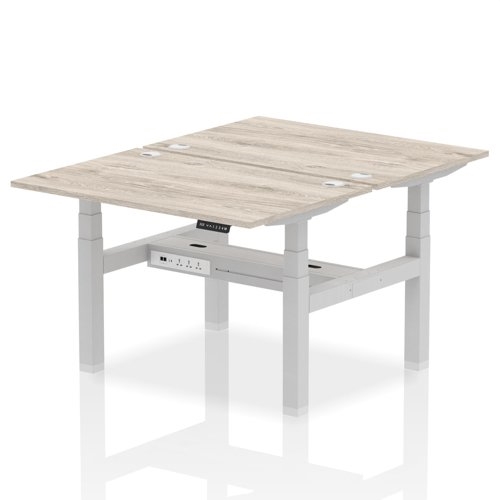 Air Back-to-Back 1200 x 800mm Height Adjustable 2 Person Bench Desk Grey Oak Top CP Silver Frame