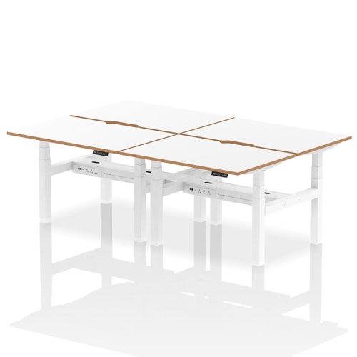Air Back-to-Back Oslo 1200 x 800mm Height Adjustable B2B 4 Person Bench Desk White Top Natural Wood Edge White Frame