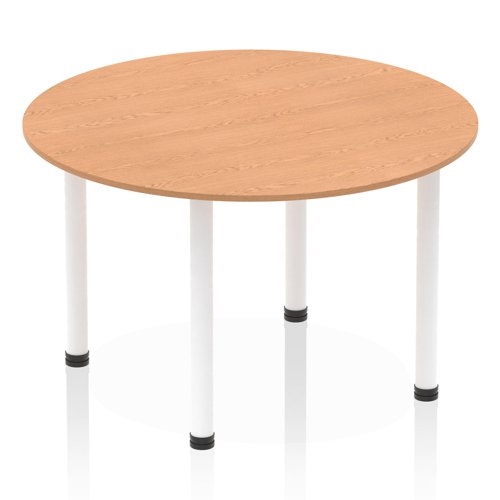 Impulse 1200mm Round Table Oak Top White Post Leg