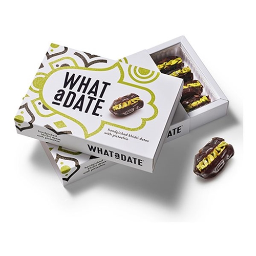 Thick shavings of juicy pistachio enveloped in a cold pressed date sirup, paired with just the perfect date; almost black with a caramel aftertaste.